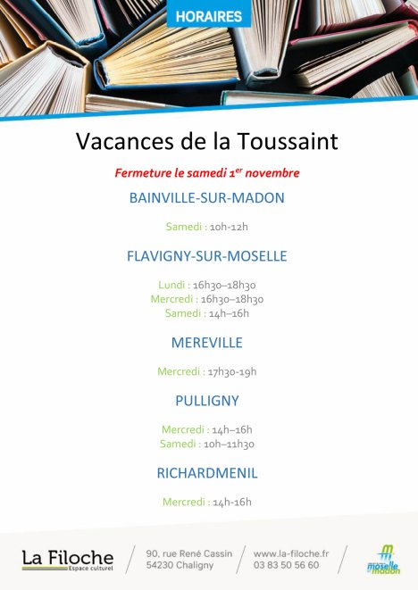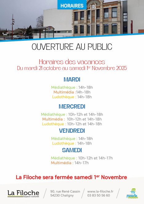 Du 21 octobre au 1er novembre La Filoche et les médiathèques en réseau changent leurs horaires.