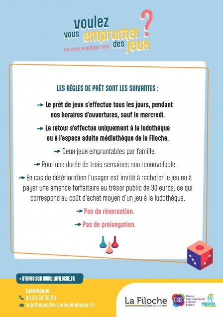Tous les jours sauf le mercredi, vous pourrez emprunter deux jeux pour 3 semaines.